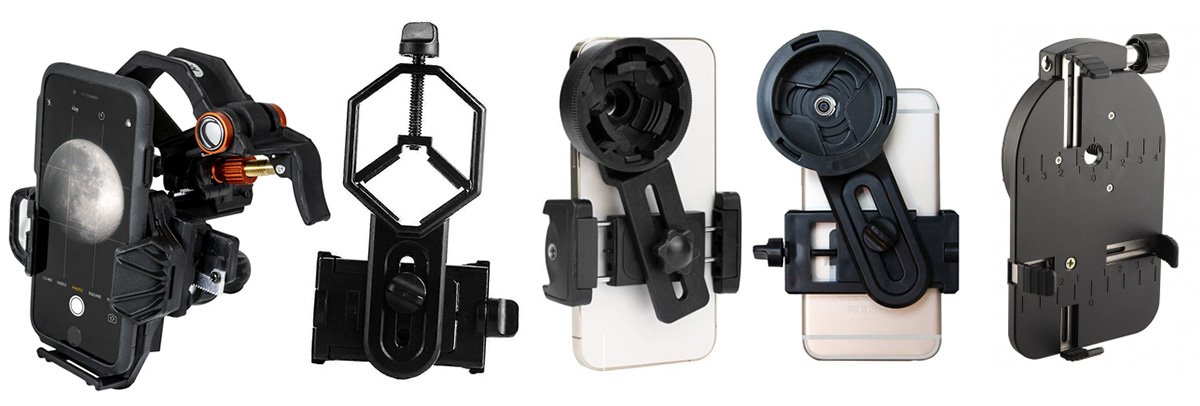 Speaking of moving about, how the holder grips your telescope’s eyepiece matters. In general, phone holders either grip the front of the eyepiece using a spiral clamp, or they use a clamp that’s more like a woodworking vice. One brand grips the eyepiece from the side, a little like a pair of scissors.