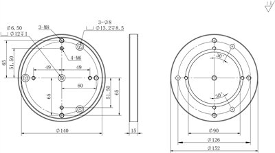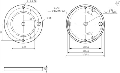 - Bottom mounting holes: 2XM8, on a 130mm diameter circle