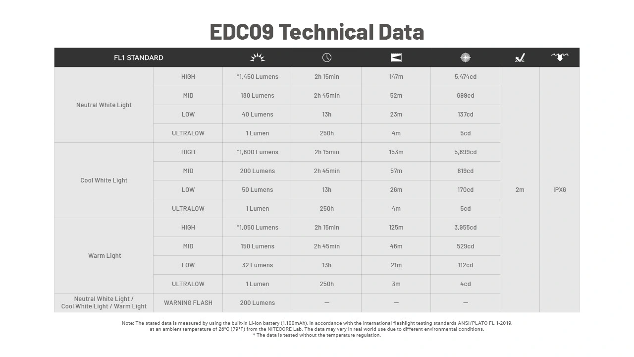 The Nitecore EDC09, a slim, flat-profile everyday carry flashlight engineered to deliver serious performance in a compact design. Powered by dual quad-core MCT UHE LEDs, it produces up to 1600 lumens with a peak beam distance of approximately 153 metres, providing dependable illumination for work, travel and outdoor use while remaining comfortable to carry every day.