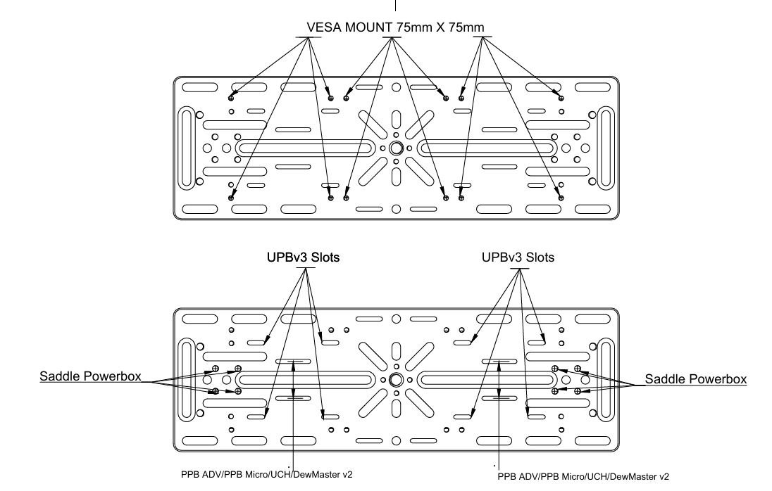 The Dovetail 335 also has holes and slots specifically designed to attach other equipment, including microcomputers with VESA-compliant hole patterns (e.g. MeLE), or Pegasus Ultimate Powerbox, Powerbox Advance, Powerbox Micro, DewMaster v2, USB Control Hub.