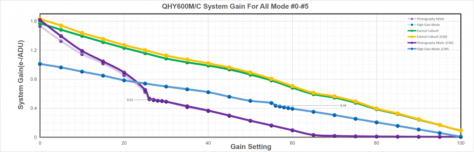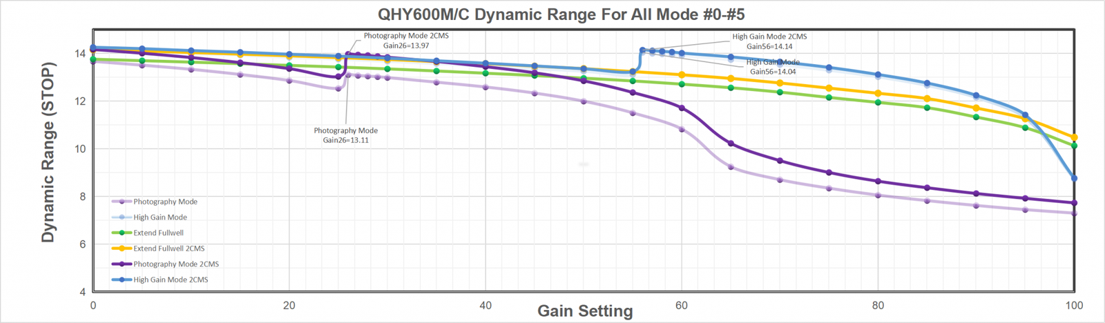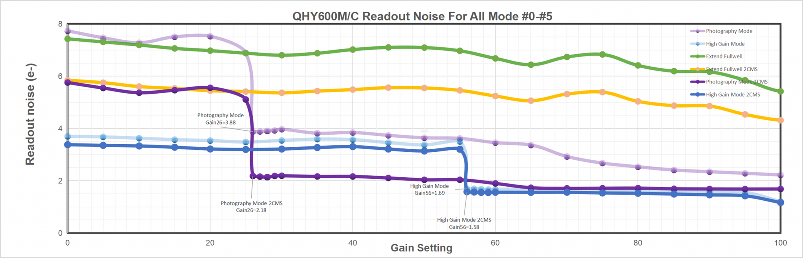 Multiple Readout Modes are special for QHY 16-bit Cameras (QHY600/268/461/411). Different readout modes have different driver timing, etc., and result in different performance. See details at “Multiple Readout Modes and Curves”.