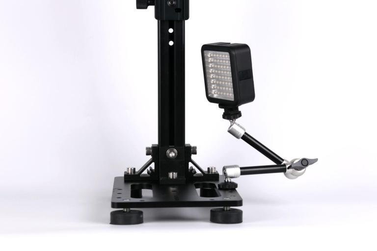 This two-length arm totals 11 inches and can be set in place using a locking nut. The arm can be directly installed on WeMacro’s vertical stand, positioning the light close to the subject.