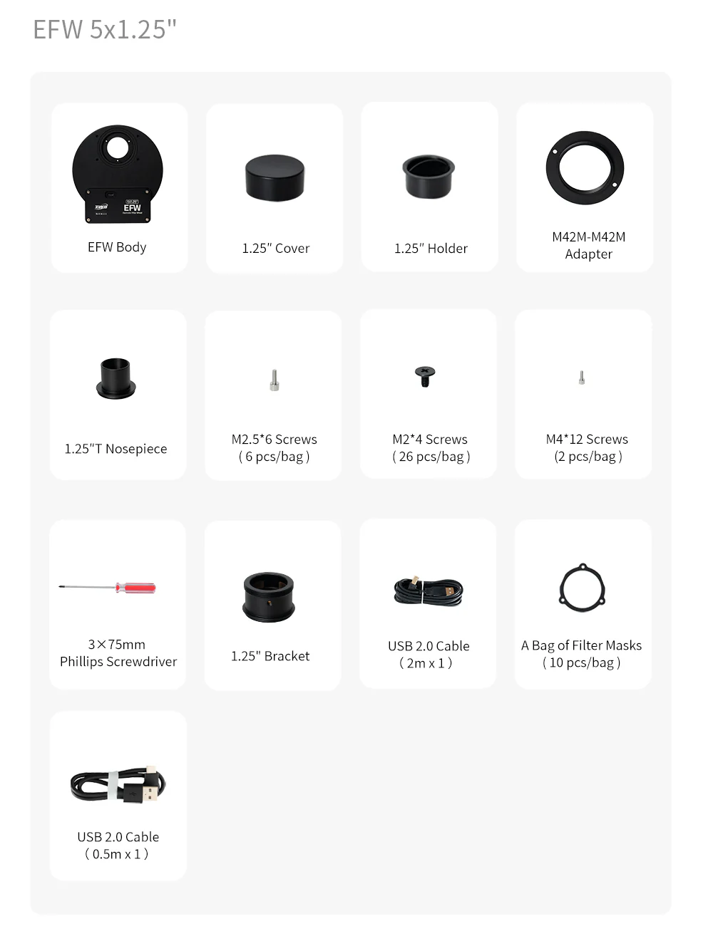 Filter Size Requirements: for 1.25″ filter wheels