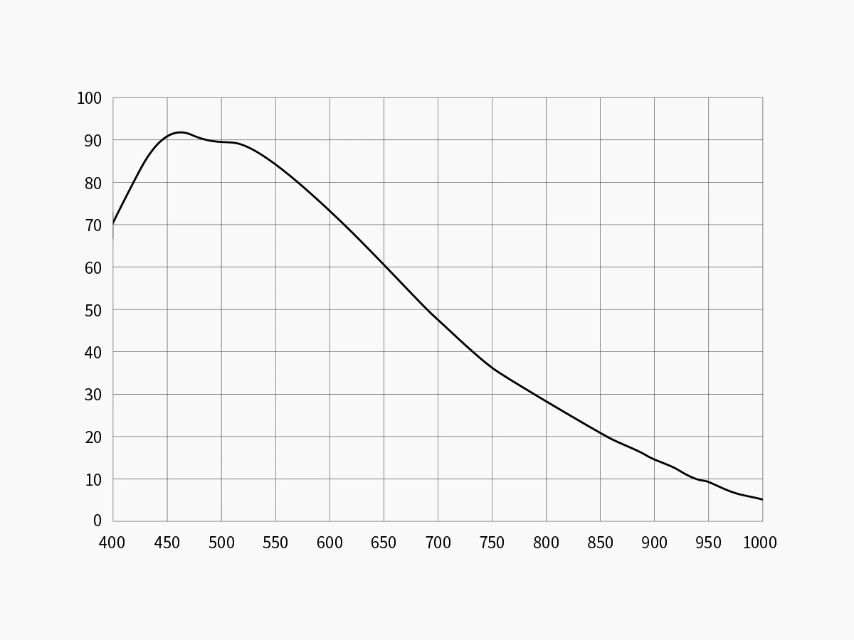 The QE peak value of the ASI2600MM Pro camera is 91%.
