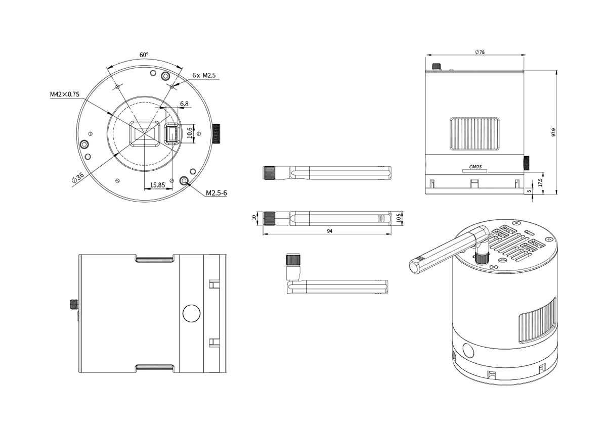 With external dual-band Wi-Fi (2.4G & 5G), you get stable performance within a 20-metre range. Cross-platform compatibility includes ASIAIR, ZWO’s ASIStudio, and third-party software via ASCOM Alpaca (ASCOM V6.6+ recommended).
