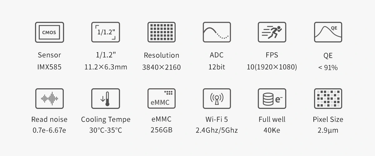 With ZWO’s integrated “Dual Sensor + ASIAIR” system, imaging becomes plug-and-play. Forget the cables and confusion — everything works together seamlessly, streamlining your entire workflow.