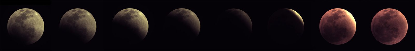 From the start of the sequence to totality at 4:10 I got eight complete brackets. From each of those I selected one and gave it the absolute minimum processing (which was simply to convert the raw files so I could open them in Photoshop. Then I arranged them so they were on the same part of the frame). I’ve put the totality shot (blurry as it is) at the top, and you can see the full sequence is below.