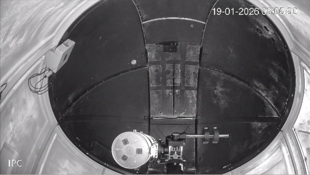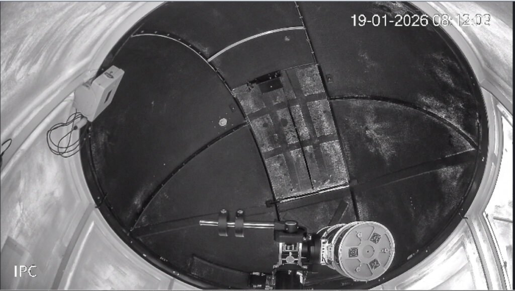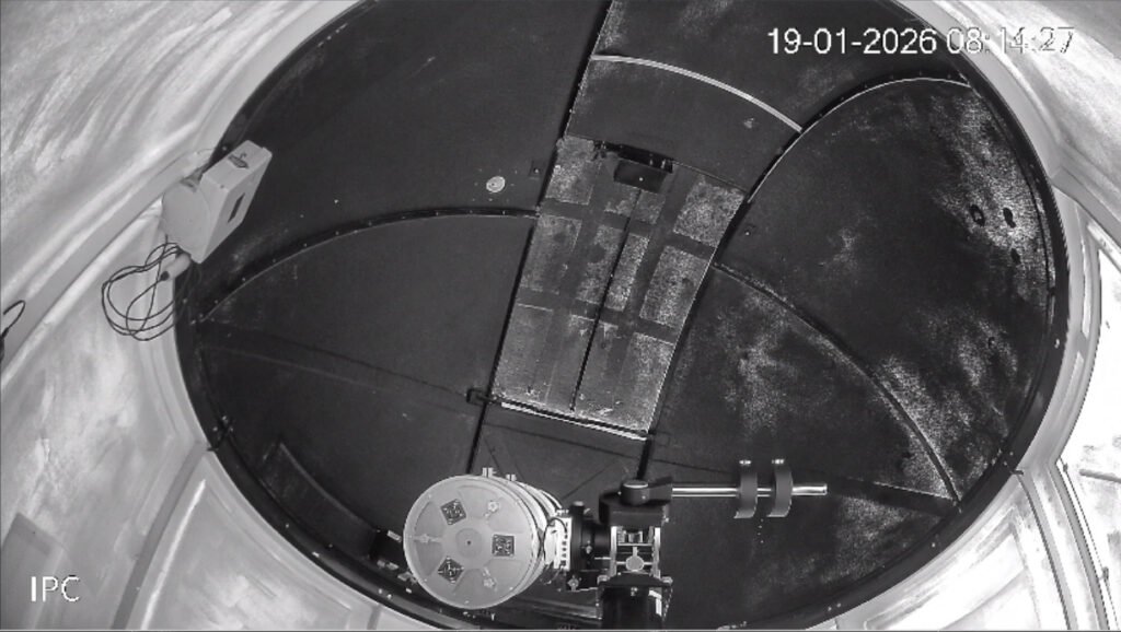 A dome is different to a roll-off observatory in that it provides a lot more protection from wind and other elements. However, because of this, the telescope can’t see the whole sky, which means it has to rotate so the shutter is always in front of the telescope.