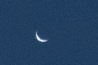 You can catch the Moon during the day in the week or so before the new Moon if you look east in the afternoon. You can also see it in the week or so following the new Moon if you look the west in the morning. Through a telescope the image isn’t going to be fantastic as the Moon’s light is swamped by scattered light in the atmosphere. But it’s interesting.