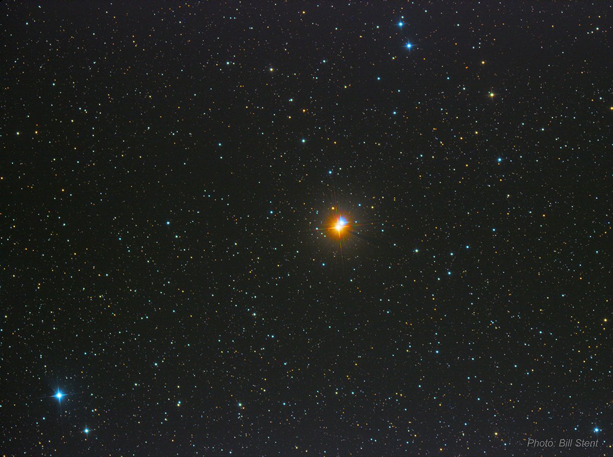 The example in the photo is Southern Albireo, which is a double star with different colours. Photos of double stars are hard to get as the stars are so close to each other that they bleed together, but if you look closely you’ll see that there are two stars there. Very often you’ll find that they look better through the scope than they do in a photo.